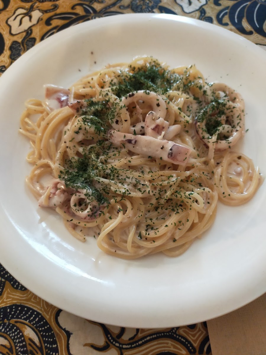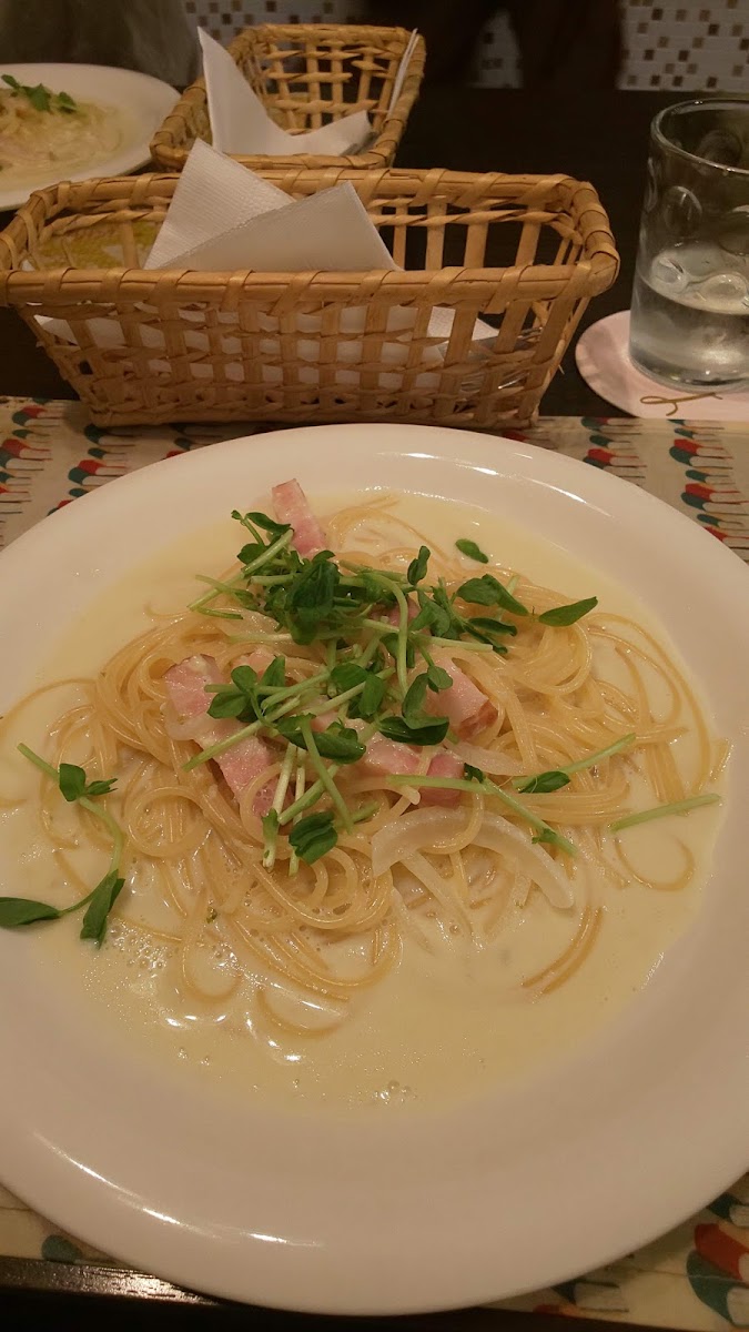 “柚子胡椒クリームパスタ” (Yuzu Pepper Cream Pasta), noting it as a standout dish, along with the comforting ambiance that makes every mouthful feel like a hug from a friend.